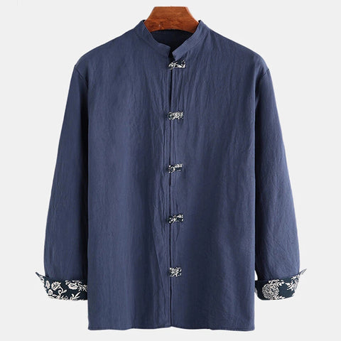 Mens Ethnic Chinese Style Solid Color Long Sleeve Shirts